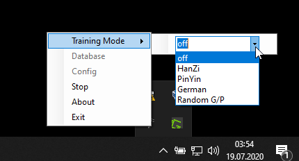 (Training mode will hide the desired language section while showing in the notification window until you press the space key.)
